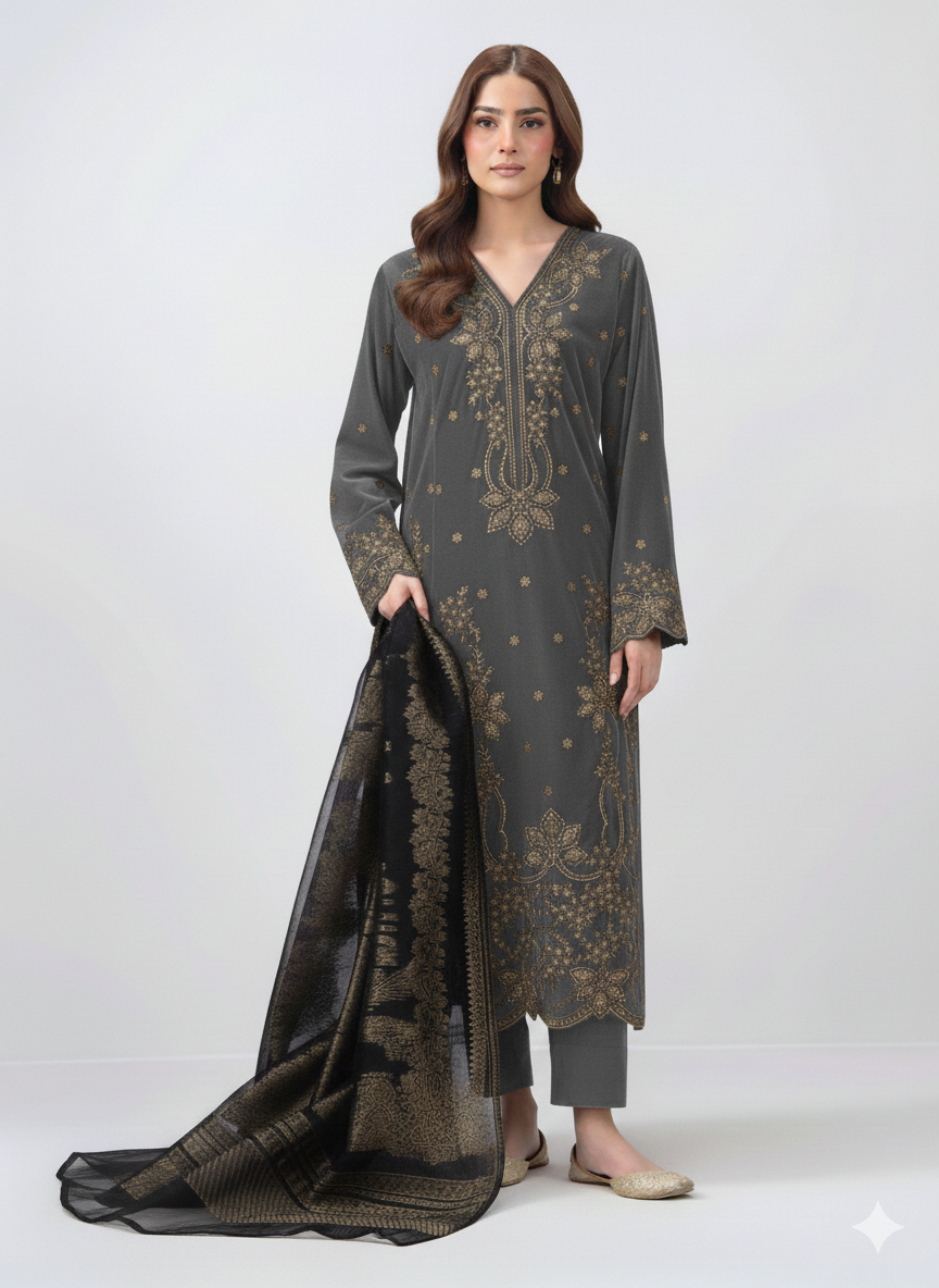 3 Piece Velvet Suit- Embroidered